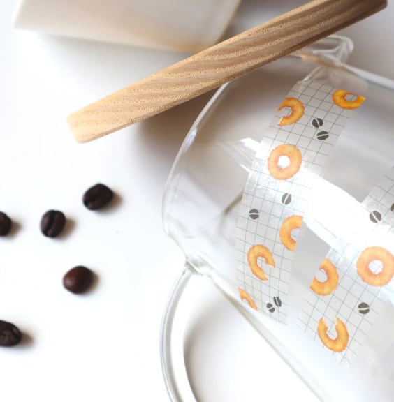 京都の喫茶店とコラボした「夢ミル京都喫茶巡り」シリーズの透明なマスキングテープ。