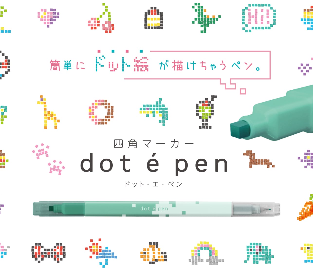 そんな「ドット絵」を手軽に描いて楽しめる『dot e pen(ドット・エ・ペン)』は、カラーバリエーションが豊富な16色展開で、いろいろなドット絵に挑戦できます。インクは滲んで広がりにくいものを、いろいろな紙との相性も考慮し採用。パキッとした発色にもこだわっています。