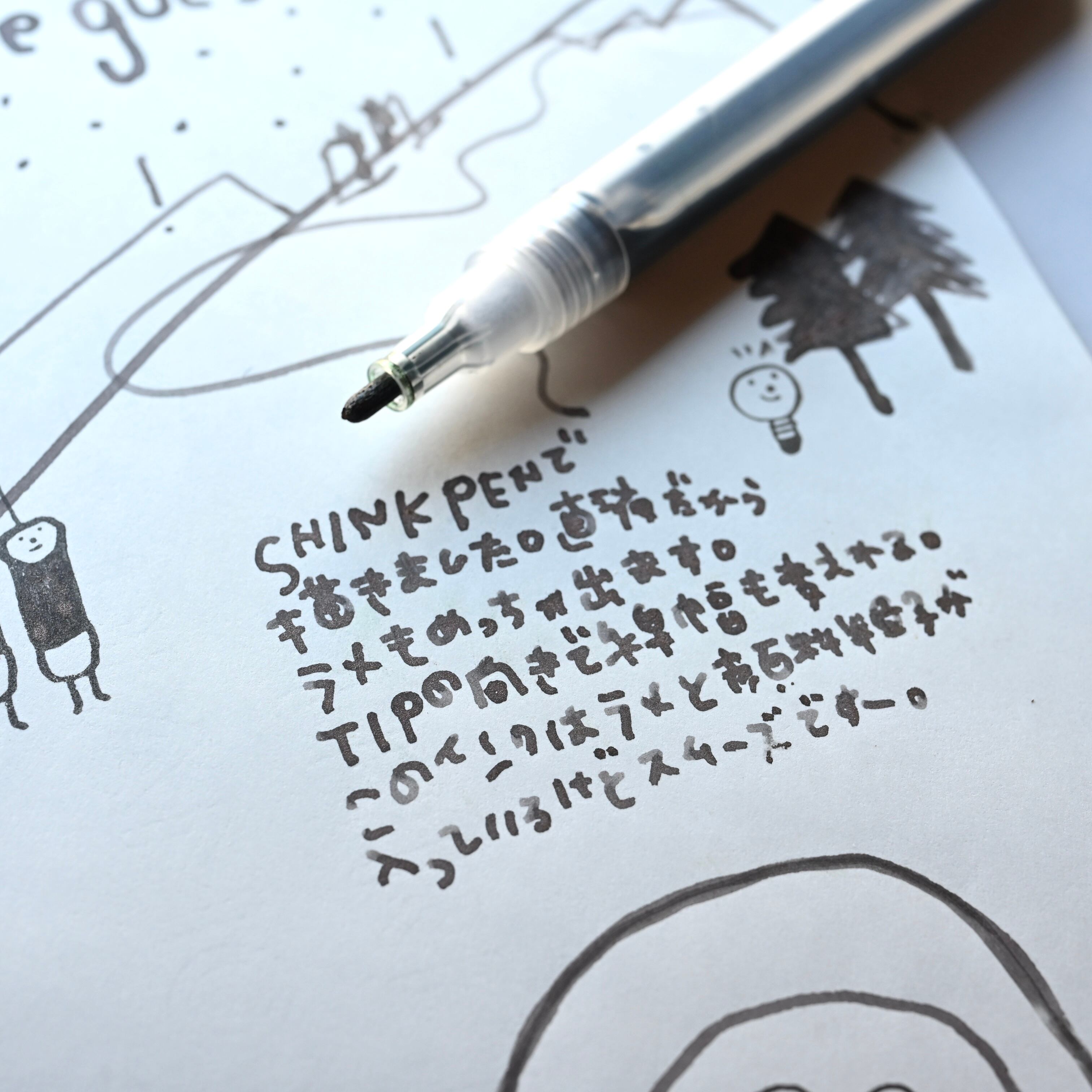 付属のチップは、3mm径のペン先チップは、両端がライナーとマーカーの形状になっており、どちらでも使用可能です。