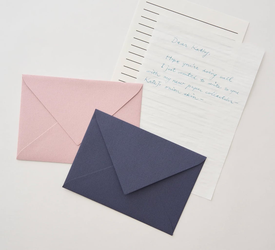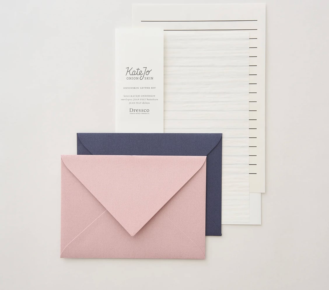 まるで玉ねぎの薄皮のように軽くやわらかく、しわ感のある紙、オニオンスキンペーパーを便箋にしたレターセット。