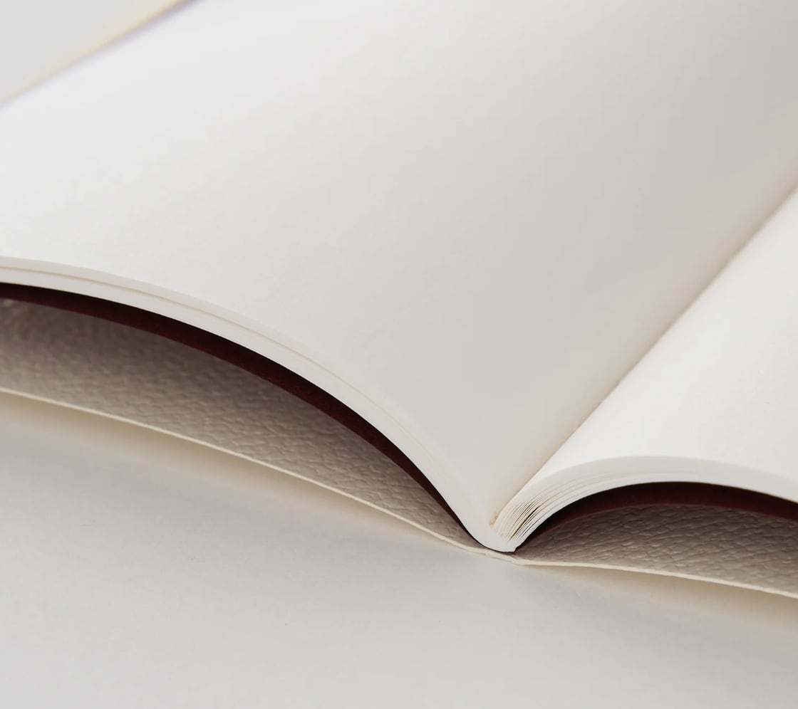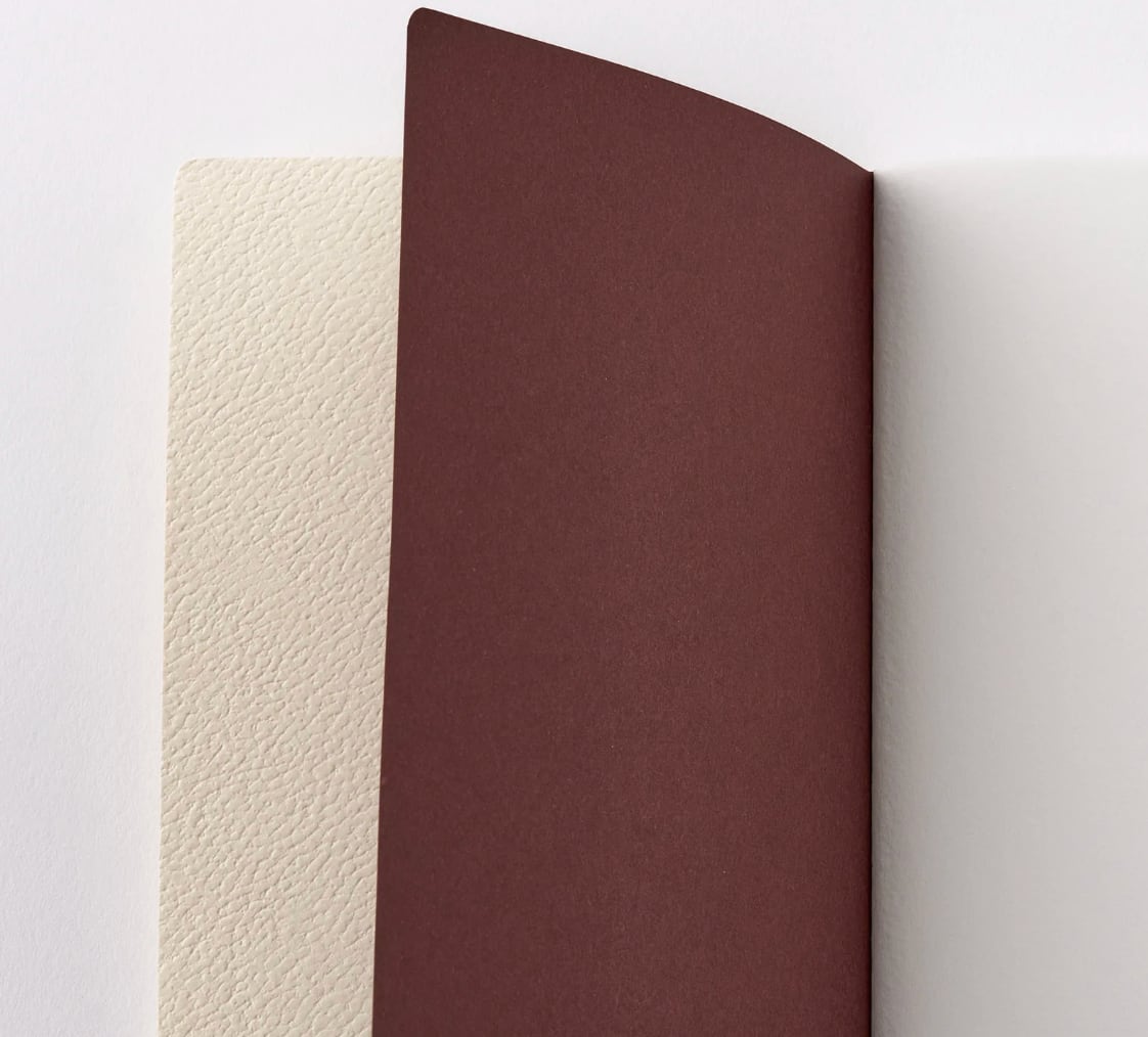 見返しは、深みのある色合いと張りのある触感が特徴のクラフト素材の紙、