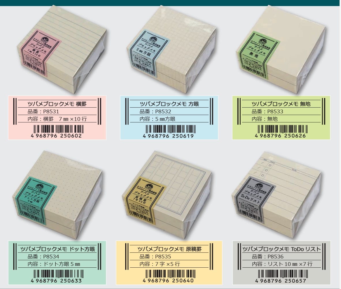 ツバメノートのブロックメモシリーズです。