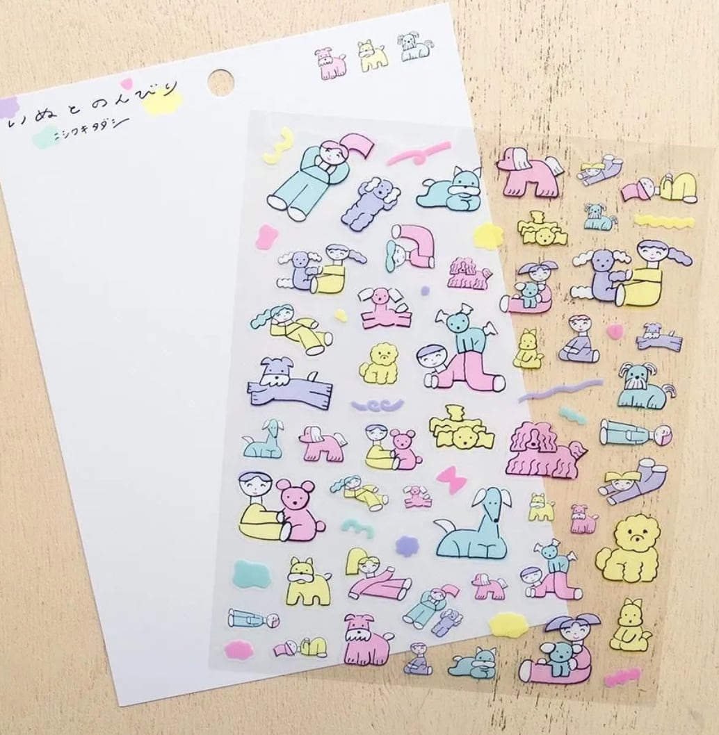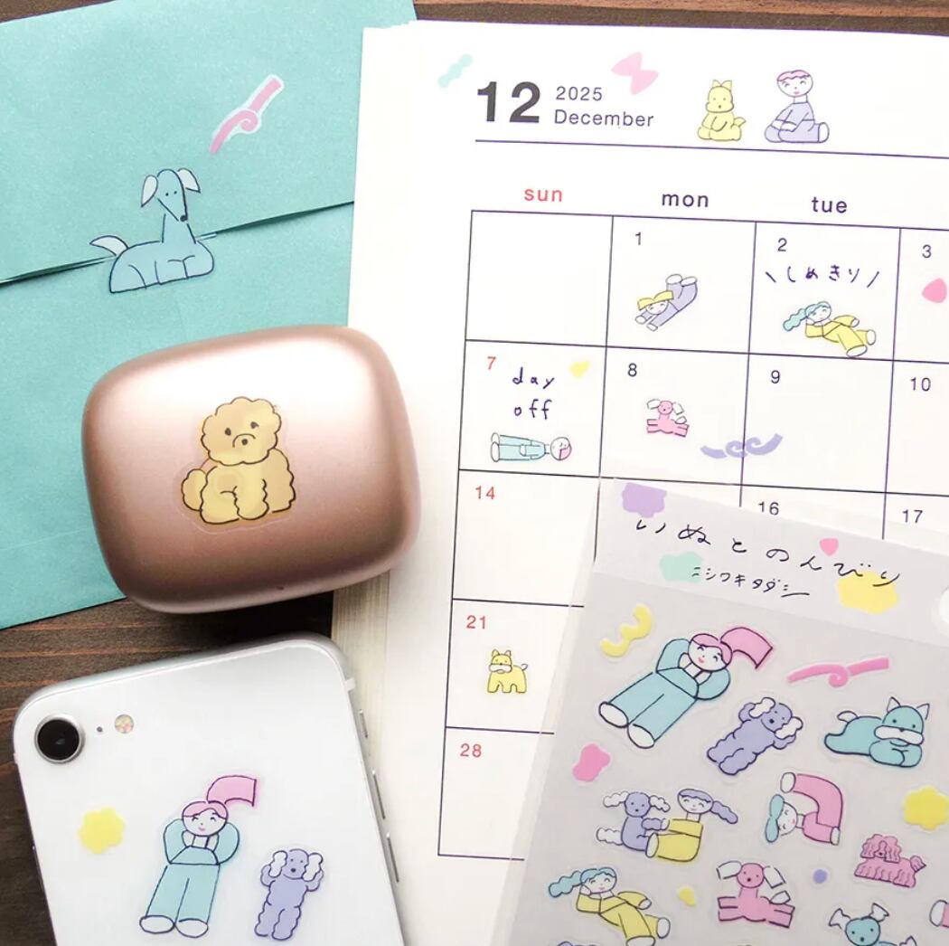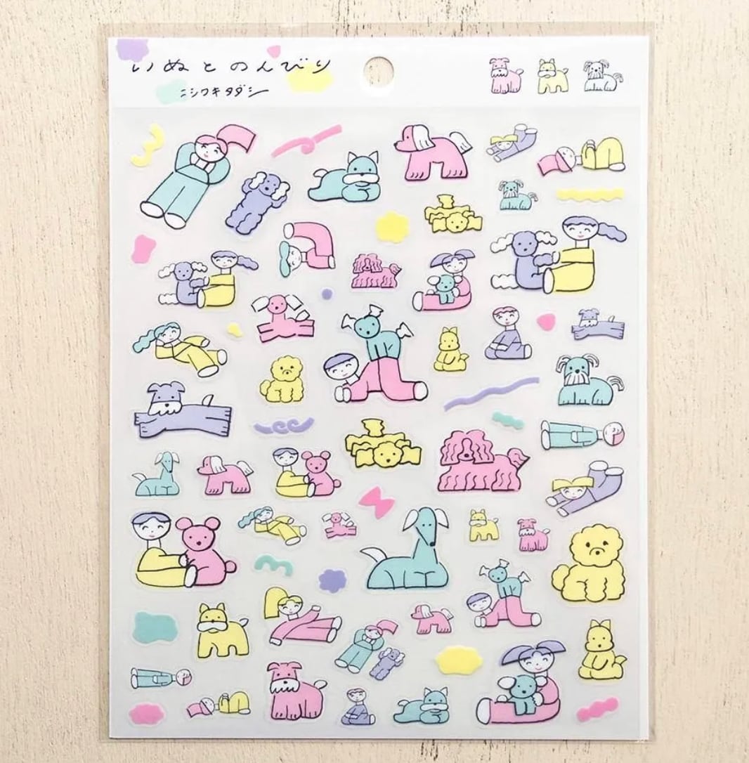 大好きないぬと、ひたすらのんびり。ニシワキタダシのかわいいシール。