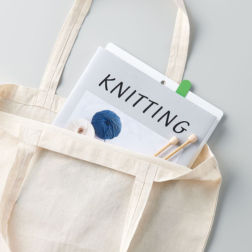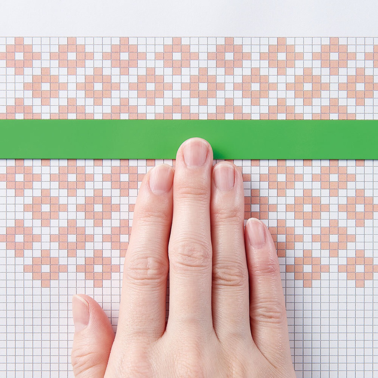 グリーンのマグネットは編み図記号や色分けされた図案が見やすく、軽い力でスライドさせることができるので作業がはかどります。